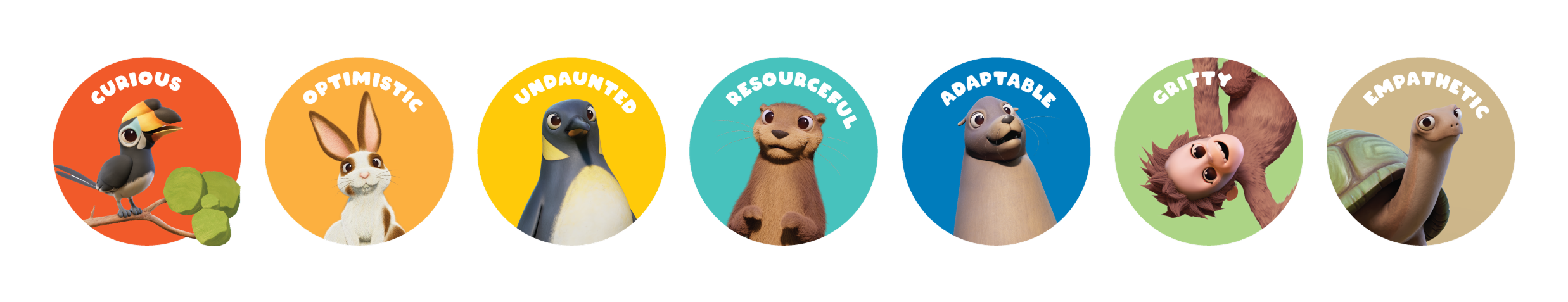 C.O.U.R.A.G.E. = Curious, Optimistic, Undaunted, Resourceful, Adaptable, Gritty, Empathetic. Each animal from the Singapore Mandai Zoo is tied to the value of C.O.U.R.A.G.E. (See images below).